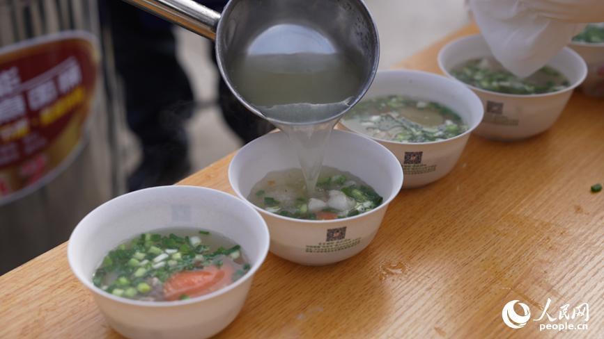 新疆特色羊肉汤香气四溢。人民网记者 尚明桢摄