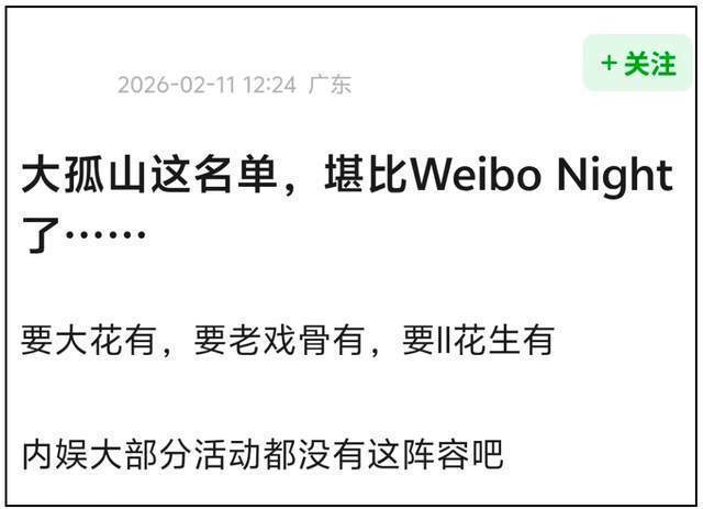 年轻的、年老的,知名的、不知名的,演戏的、唱歌的……星二代、明星夫妻、豪门媳妇等等等等都去了大孤山,甚至去了好几次,网友还调侃明年微博之夜干脆在大孤山办了,如今一看名单,去大孤山的明星可比微博之夜明星阵容全面多了,咖位都更大呢!
