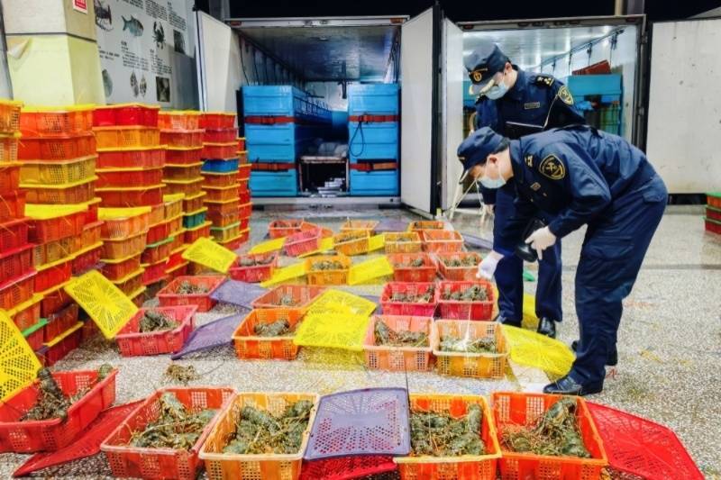 春节国内海鲜消费需求旺盛,是食用水生动物进口的高峰期,企业加大了订货量,东兴口岸食用水生动物单日进口量已经连续多日保持在100车以上的高位,大多是龙虾、青蟹等高值海鲜。