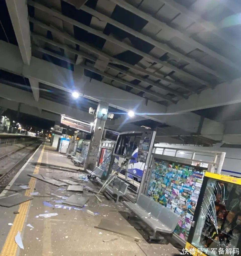 现场画面显示,这不是象征性的袭击。集束弹头造成了站台屋顶坍塌、电气设备烧毁、列车车窗全碎。但令人玩味的地方在于:在如此猛烈的打击下,以色列官方居然宣布“零人员伤亡”。