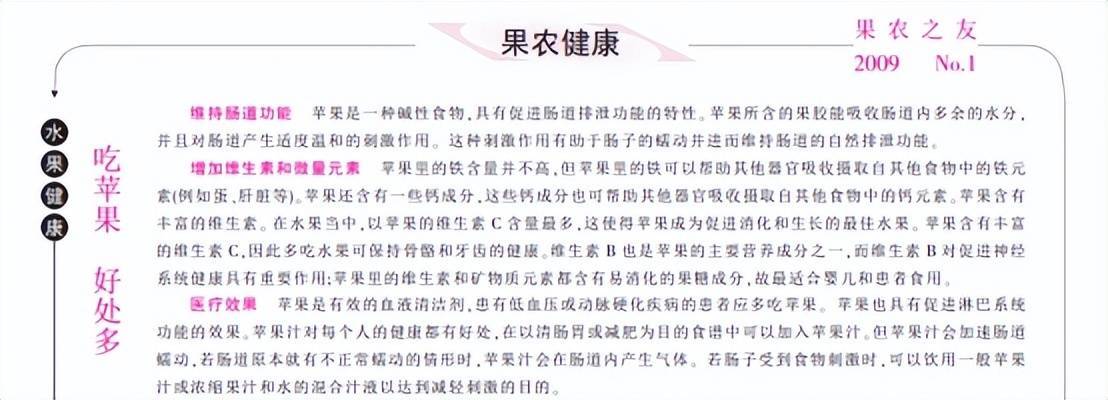 苹果富含丰富的膳食纤维,特别是果胶,这是一种能有效促进肠胃蠕动的天然物质,果胶不仅能帮助肠道排毒,还能够平衡肠道内的有益菌群。